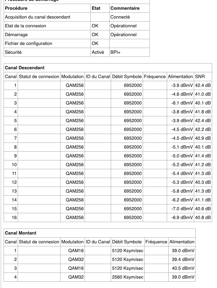 Votre TX est très bon et n'est pas "faible" comme vous dites dans le titre mais il y a une vraie perturbation sur le réseau vu que la modulation est passée en QAM16 au lieu de QAM32 sur 2 canaux.