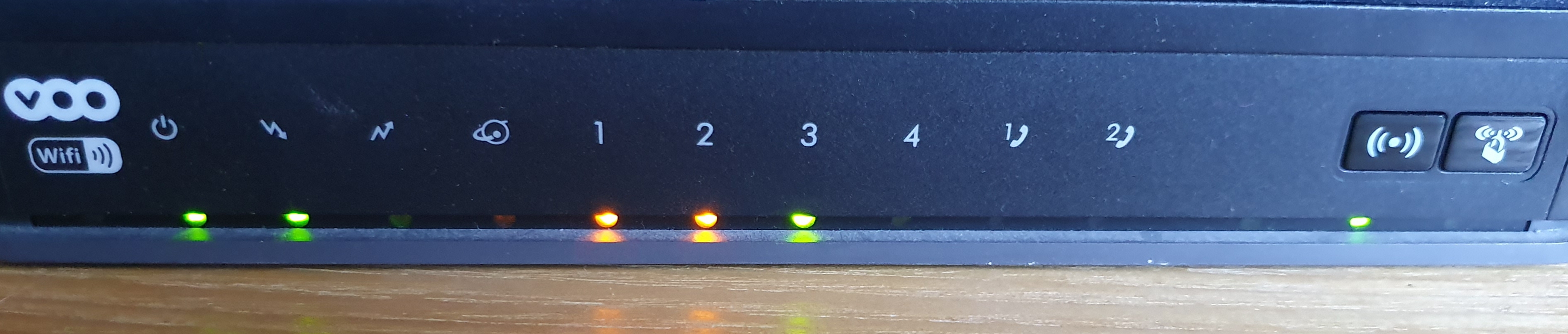 Le led vert de l eclair vers le bas clignote mais le led de l eclair vers le haut est eteint ainsi que celui d a côté, une sphère avec ligne qui l entoure, bref sur les trois symboles représentant l etat de la connexion celui de gauche clignote et les deux autres sont eteints
