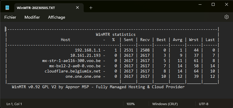 Le résultat WinMTR est bizarre ou pas fait dans les bonnes conditions…🤔