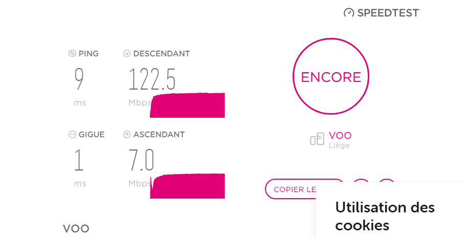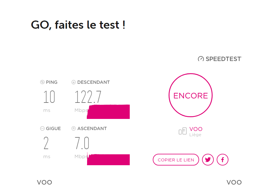 Faites le speedtest en câblé direct sur le modem , avec un ordinateur récent ayant une carte réseau compatible Gigabit et un câble Ethernet catégorie CAT.5E minimum ou supérieur (Gigabit) ....