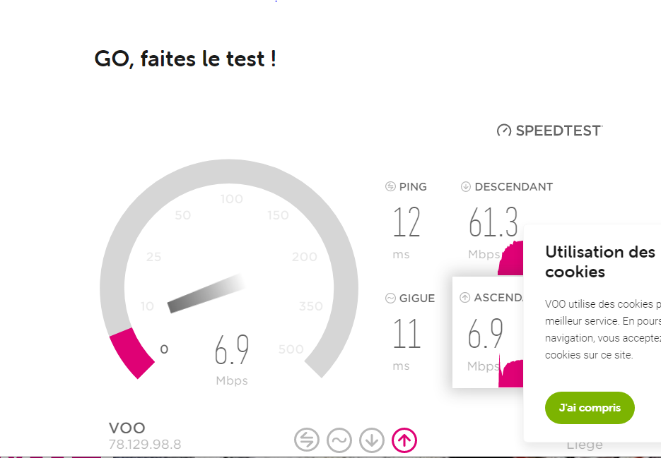 Notez que la vitesse annoncée vaut exclusivement pour une connexion en câblé Ethernet direct sur le modem , jamais en Wifi ni via des CPL , qui sont des technologies sujettes à toutes sortes de perturbations.