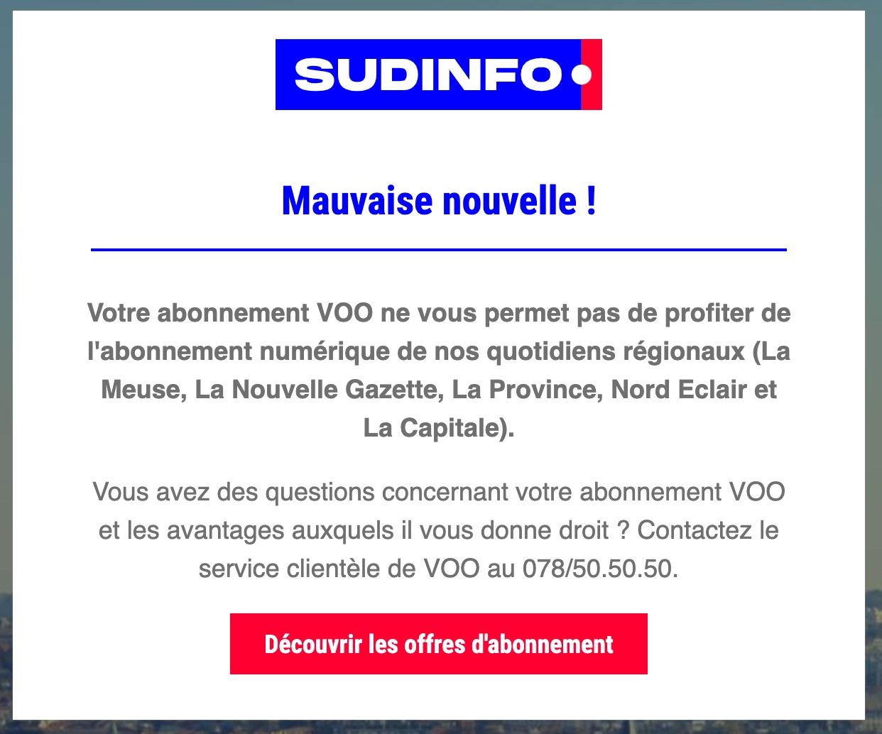 J'ai essayé d'activer l'offre Voo pour l'abonnement SudInfo premium mais je reçoit le message suivant (voir image).