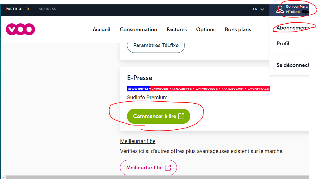 le n de client et dans le profil Merci