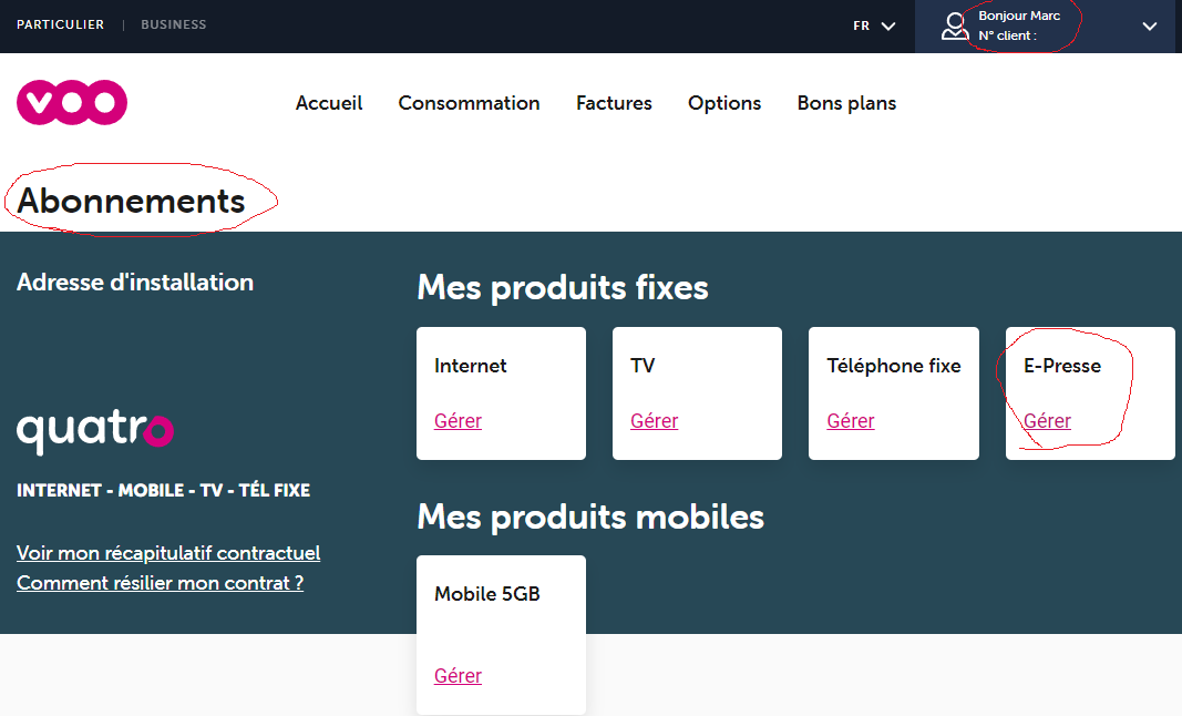 En cliquant sur celui-ci vous choisissez "abonnement" et ensuite vous cliquez sur "géreré dans la tuile "E-presse"