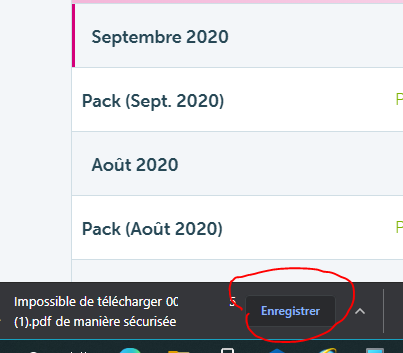 "enregistrer le lien sous" , il indique en bas qu'il est "impossible de télécharger le fichier de manière sécurisée", il faut cliquer sur la flêche et faire "conserver".